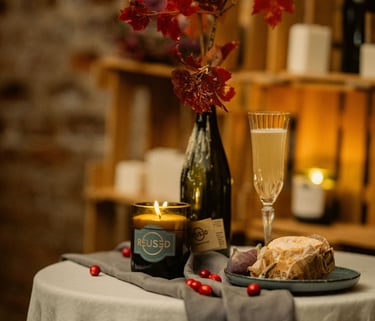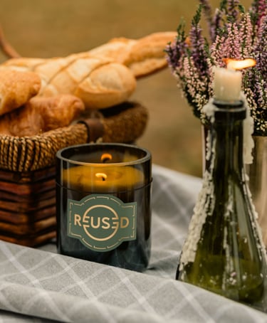 REUSED istorija prasideda nuo tvarių ir kvapnių rapsų vaško žvakių, kurių gamybai panaudojami skirtingų dydžių ir spalvų stikliniai buteliai, kurie jau yra atlikę pirminę savo funkciją.